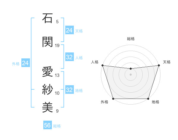石関 愛紗美さんの天格は24画の5点!