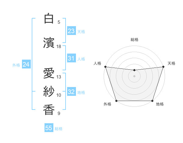 白濱 愛紗香さんを姓名の画数から五運を鑑定