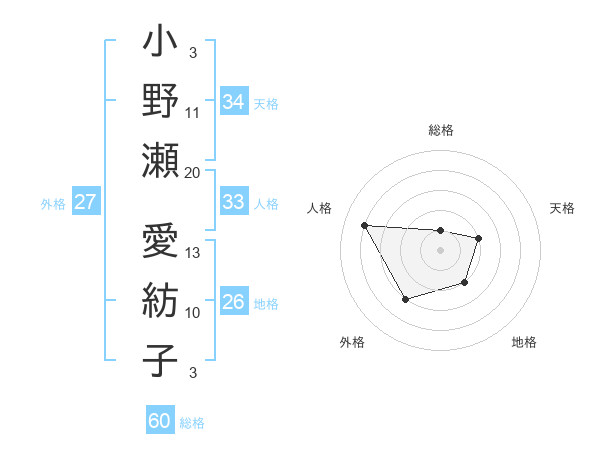 小野瀬 愛紡子さんを姓名の画数から五運を鑑定