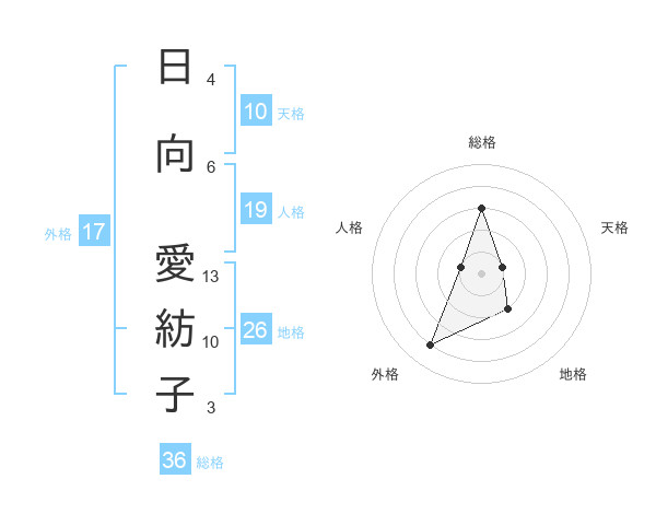 日向 愛紡子さんを姓名の画数から五運を鑑定