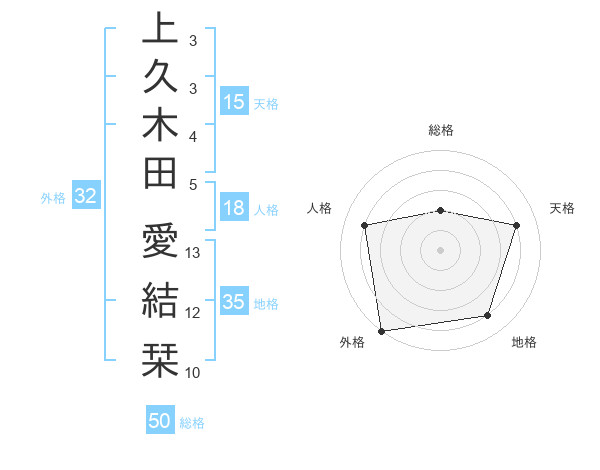 上久木田 愛結栞さんを姓名の画数から五運を鑑定