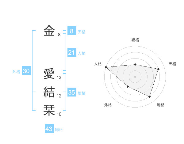 金 愛結栞さんを姓名の画数から五運を鑑定