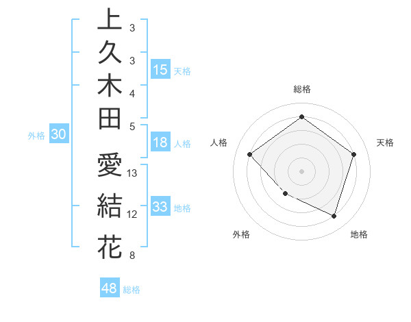 上久木田 愛結花さんの天格は15画の4点!