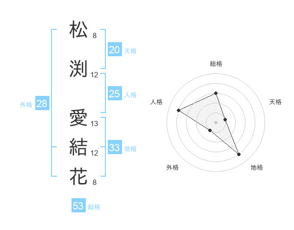 松渕 愛結花さんの総格は53画の3点!