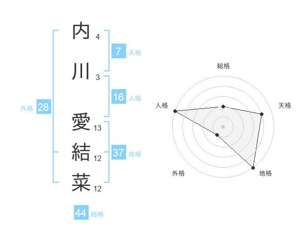内川 愛結菜さんを姓名の画数から五運を鑑定