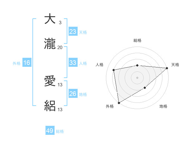 大瀧 愛絽さんを姓名の画数から五運を鑑定