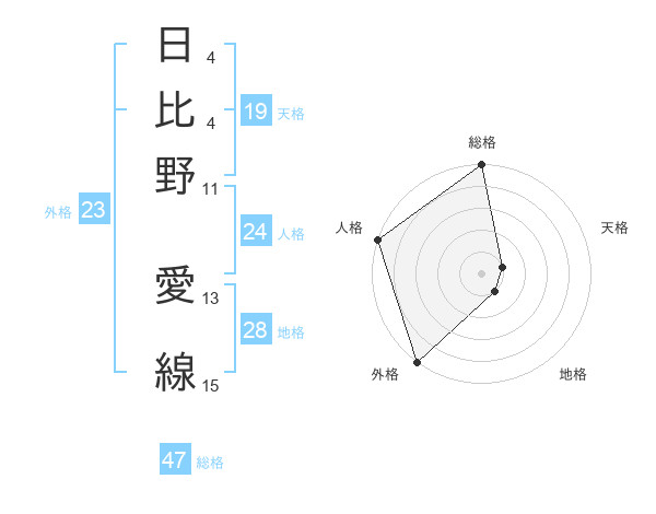 日比野 愛線さんを姓名の画数から五運を鑑定