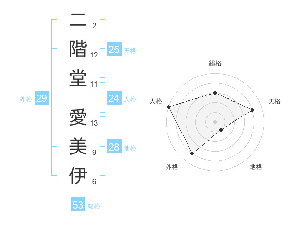 二階堂 愛美伊さんの総格は53画の3点!
