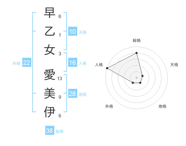 早乙女 愛美伊さんを姓名の画数から五運を鑑定