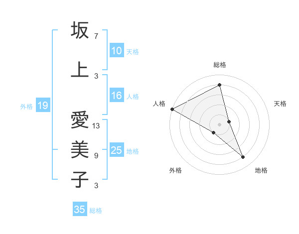 坂上 愛美子さんを姓名の画数から五運を鑑定