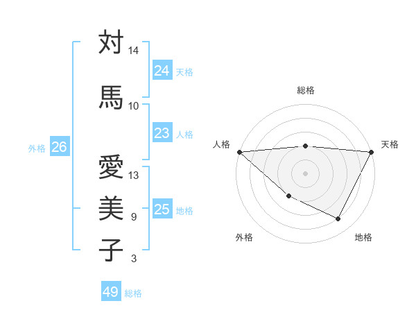 対馬 愛美子さんを姓名の画数から五運を鑑定