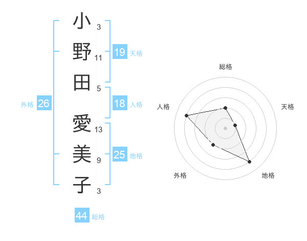 小野田 愛美子さんを姓名の画数から五運を鑑定
