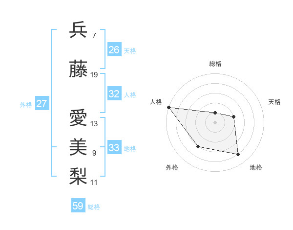 兵藤 愛美梨さんを姓名の画数から五運を鑑定