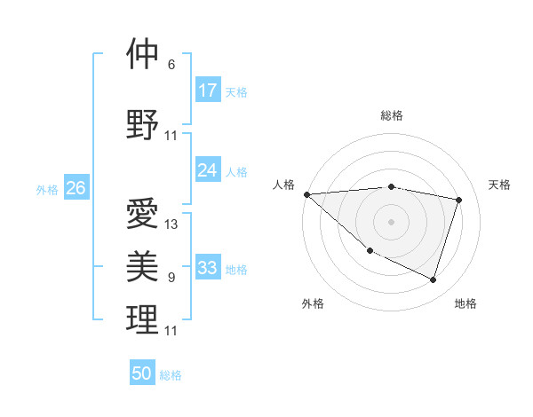 仲野 愛美理さんを姓名の画数から五運を鑑定