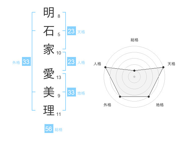 明石家 愛美理さんを姓名の画数から五運を鑑定