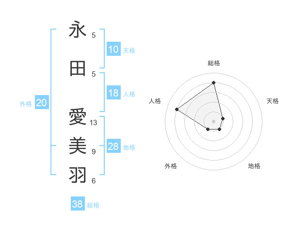 永田 愛美羽さんの総格は38画の4点