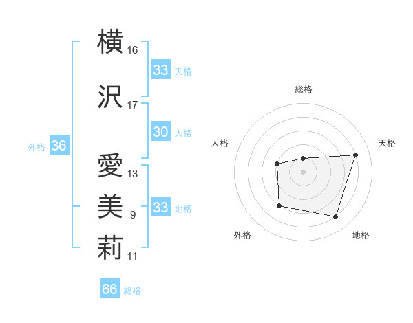 横沢 愛美莉さんを姓名の画数から五運を鑑定