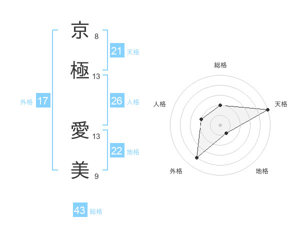 京極 愛美さんの外格は17画の4点!