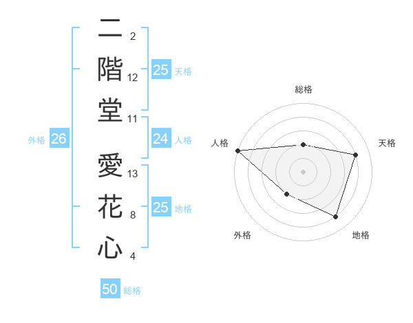 二階堂 愛花心さんを姓名の画数から五運を鑑定