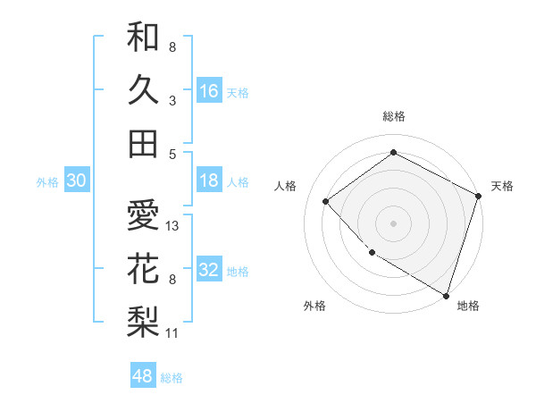 和久田 愛花梨さんを姓名の画数から五運を鑑定