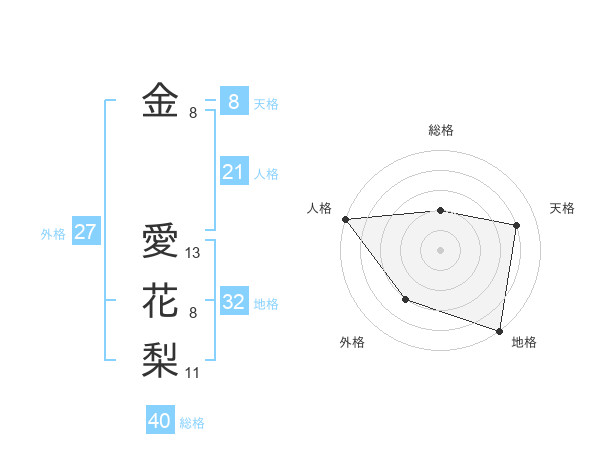 金 愛花梨さんの天格は8画の4点!