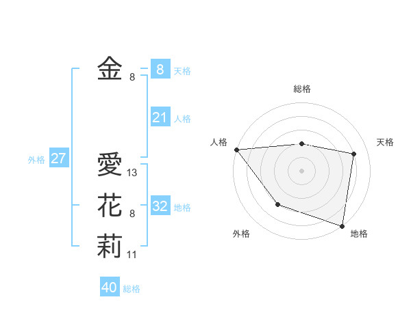 金 愛花莉さんの天格は8画の4点!
