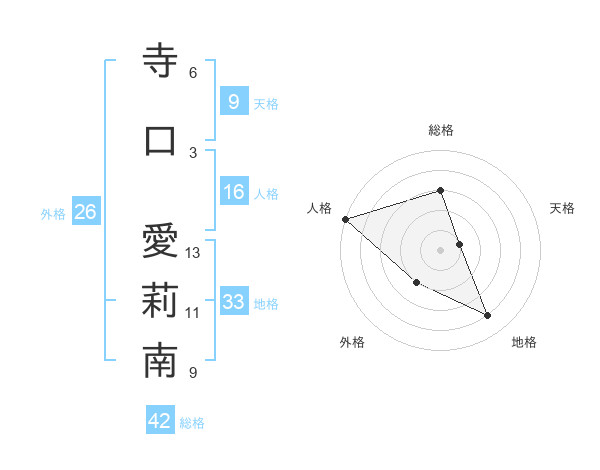 寺口 愛莉南さんを姓名の画数から五運を鑑定