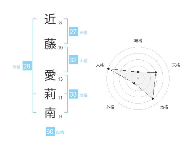近藤 愛莉南さんを姓名の画数から五運を鑑定
