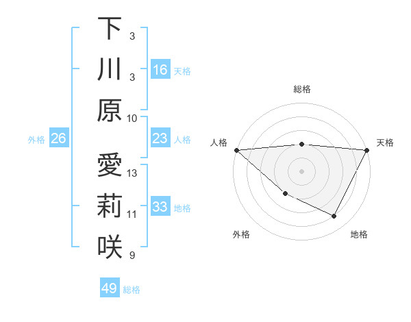 下川原 愛莉咲さんの総格は49画の2点!