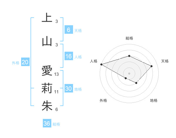 上山 愛莉朱さんを姓名の画数から五運を鑑定