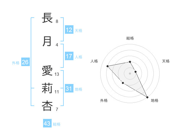 長月 愛莉杏さんの地格は31画の5点!