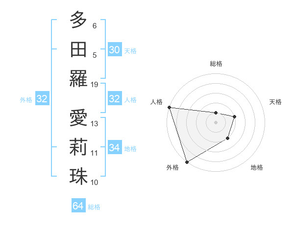 多田羅 愛莉珠さんの外格は32画の5点!