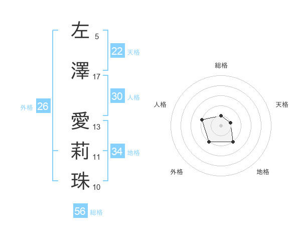 左澤 愛莉珠さんを姓名の画数から五運を鑑定