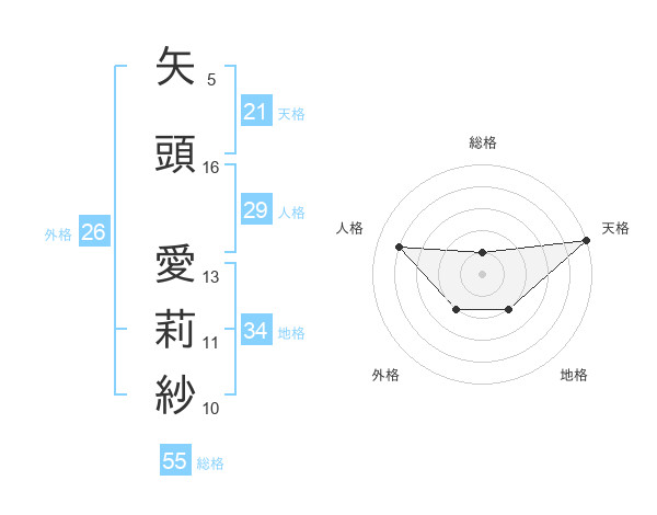 矢頭 愛莉紗さんを姓名の画数から五運を鑑定