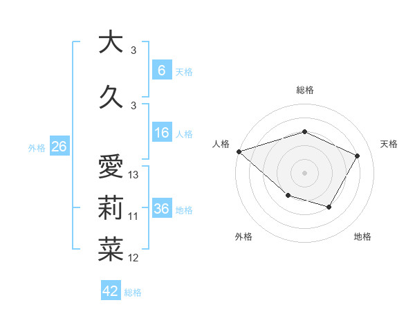 大久 愛莉菜さんを姓名の画数から五運を鑑定