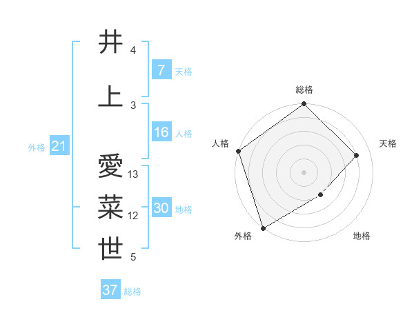 井上 愛菜世さんの総格は37画の5点!
