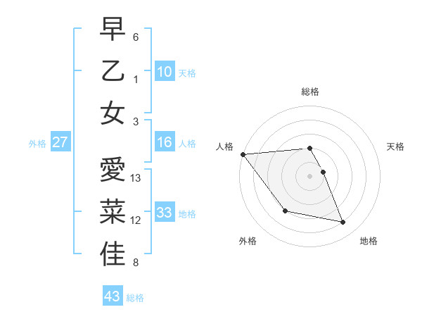 早乙女 愛菜佳さんを姓名の画数から五運を鑑定
