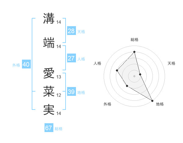 溝端 愛菜実さんの総格は67画の4点!