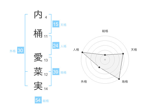 内桶 愛菜実さんを姓名の画数から五運を鑑定