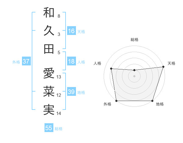 和久田 愛菜実さんを姓名の画数から五運を鑑定
