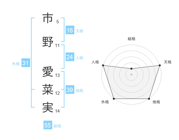 市野 愛菜実さんの天格は16画の5点!