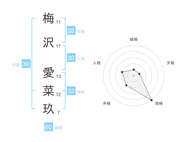 梅沢 愛菜玖さんを姓名の画数から五運を鑑定