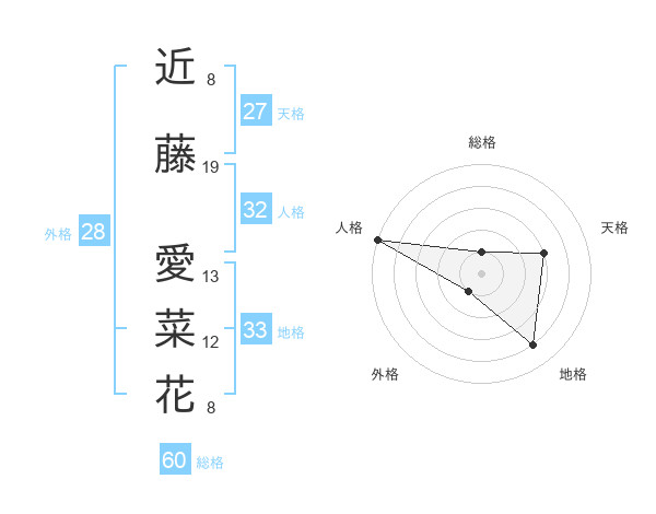 近藤 愛菜花さんの総格は60画の1点!