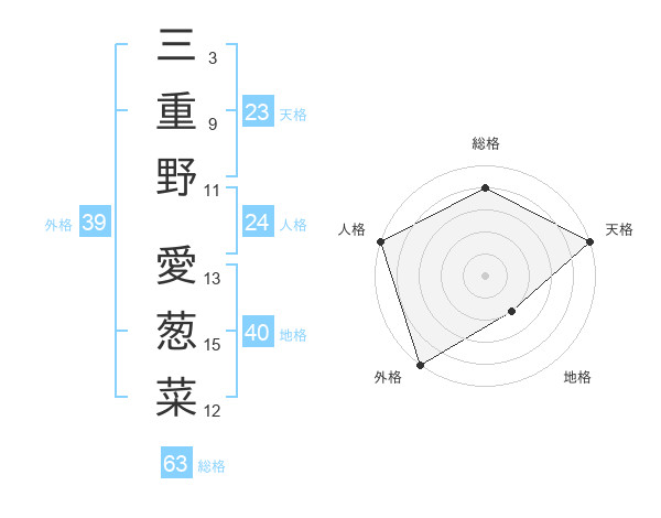 三重野 愛葱菜さんを姓名の画数から五運を鑑定