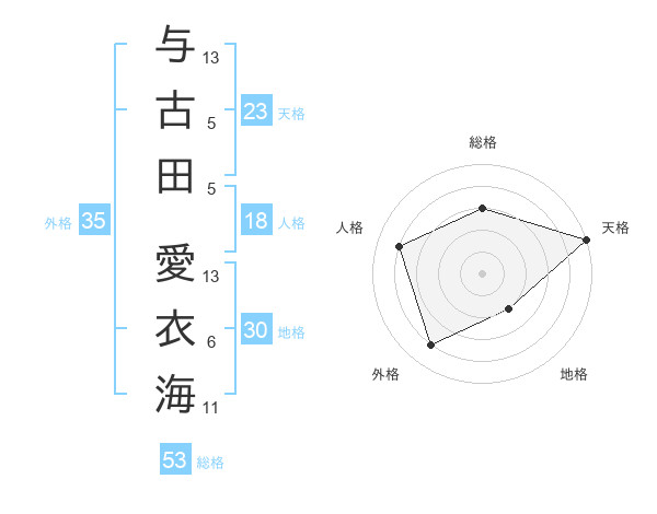 与古田 愛衣海さんの天格は23画の5点