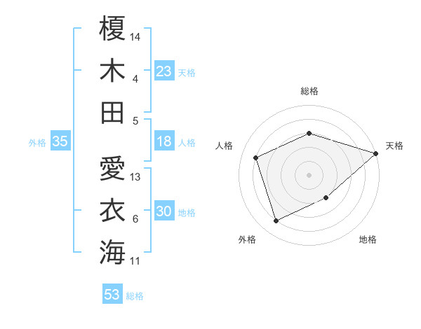 榎木田 愛衣海さんの総格は53画の3点