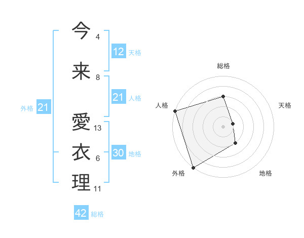今来 愛衣理さんを姓名の画数から五運を鑑定