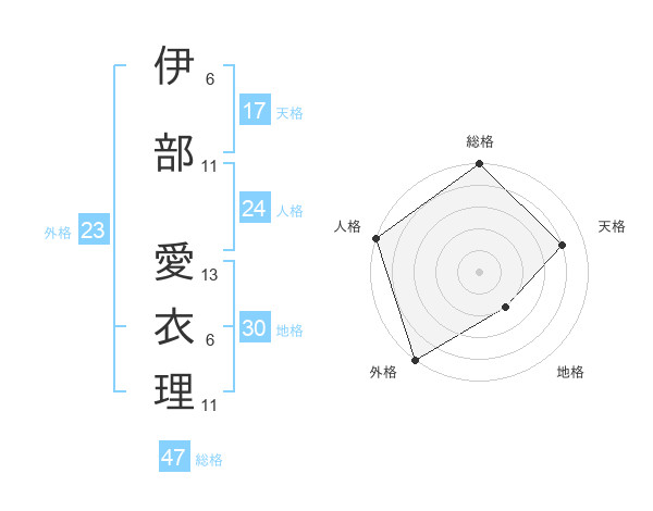 伊部 愛衣理さんの外格は23画の5点!