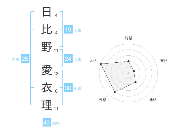 日比野 愛衣理さんの総格は49画の2点!