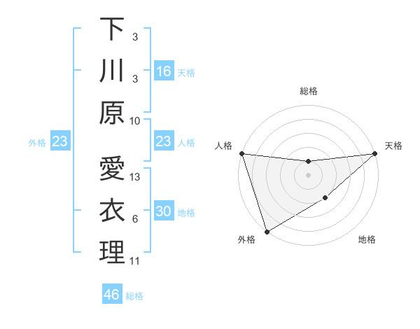 下川原 愛衣理さんを姓名の画数から五運を鑑定